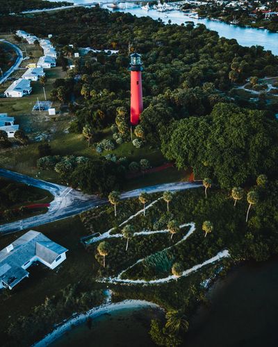 The area where the town now sits was originally named for the Hobe Indian tribe which lived at the mouth of the Loxahatchee River and whose name is also preserved in the name of nearby Hobe Sound. A mapmaker misunderstood the Spanish spelling Jobe of the native people name Hobe and recorded it as Jove. Subsequent mapmakers further misunderstood this to be the name of the Roman god also known as Jupiter, and they adopted the more familiar name of Jupiter. The god Jupiter (or Zeus in Greek mythology) is the chief Roman god, and the god of light, the sky and weather, and of the state and its welfare and laws. Jupiter's consort was Juno, inspiring a neighboring town to name itself Juno Beach. The most notable landmark is the Jupiter Inlet Lighthouse, completed in 1860. Made of brick, it was painted red in 1910 to cover discoloration caused by humidity. Hurricane Jeanne in 2004 sandblasted the paint from the upper portion of the tower, and the tower was repainted using a potassium silicate mineral coating. The lighthouse is often used as the symbol for Jupiter.